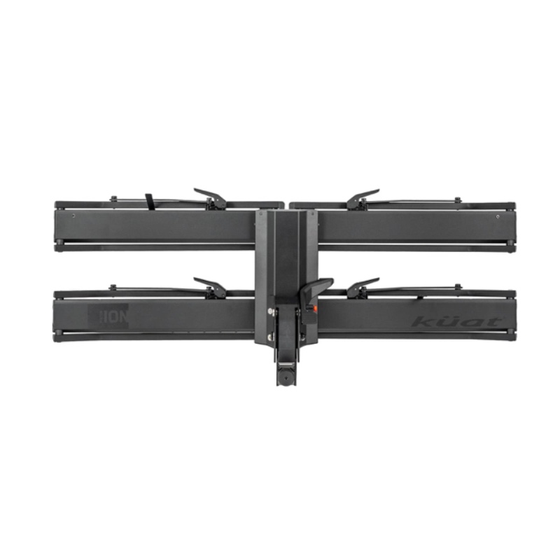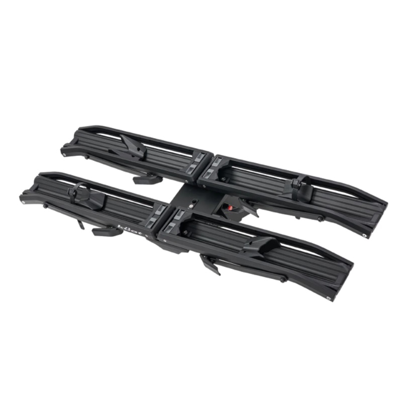重量級e-Bike専用設計でありながら、ほぼ全ての自転車に対応する汎用性を備え、最大2台の自転車(各100ポンド/約45kg)をフレームとの接触無く運搬可能です。