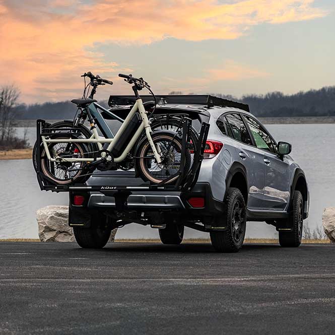 ピストン ION は舗装路に限定されません。 RVでの使用が認可され、オフロード対応であるため、電動マウンテンバイクを奥地まで運搬したり、グラベルルートを自信を持って走破できます。 RV設置時、各トレイは1台あたり最大80ポンド(約36kg)の自転車をサポートし、オフロード使用時は1台あたり50ポンド(約23kg)まで対応します。